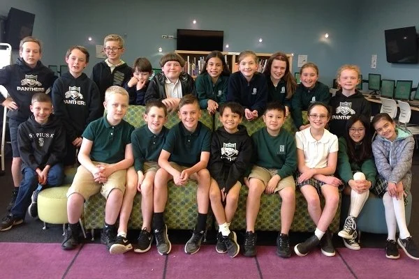 Battle of the Books is an extracurricular reading competition that tests comprehension and recall skills. Fourth and fifth grade students compete each spring with other local Catholic schools.